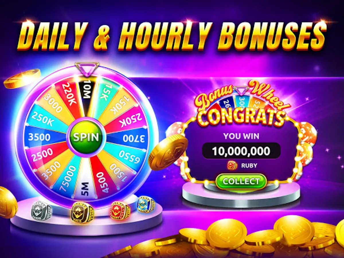 ◼ Come in to collect you morning and evening bonus wheel for more daily free coins to use on your favorite free to play slots game!