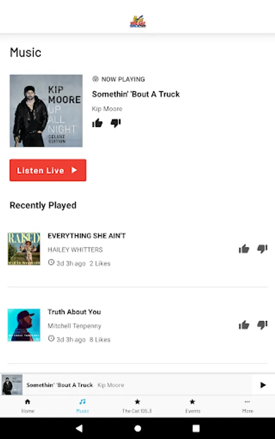 105.3 The Cat plays chart topping country artists all day long. From Miranda Lambert, Carrie Underwood to Kenny Chesney and Luke Bryan. Start your mornings with Haley and Mike weekdays from 6a-10a and the hottest country music all day.