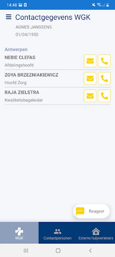 Patients of the Wit-Gele Kruis can safely consult their home nursing file via myWGK. Doctors can also view their patient's file at the Wit-Gele Kruis via myWGK.