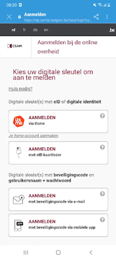 Registration is done securely via Itsme®