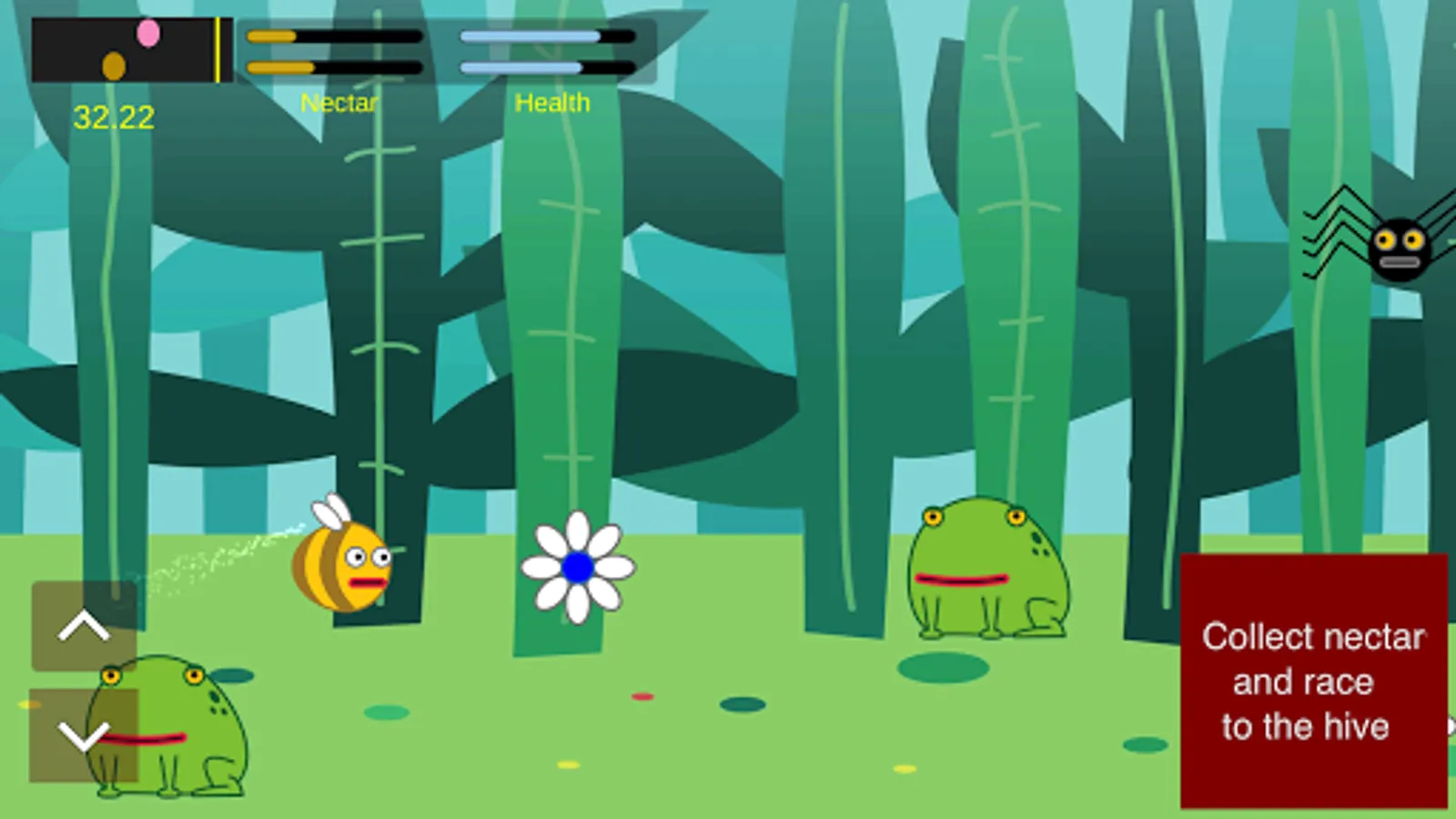 Wing Leader is fun for all ages. Adults and children will enjoy the challenge. Your bee visits flowers to collect nectar and avoids obstacles and enemies. Wasps and spiders are particularly annoying, and frogs ... well, frogs are always amusing, but they can get in the way.