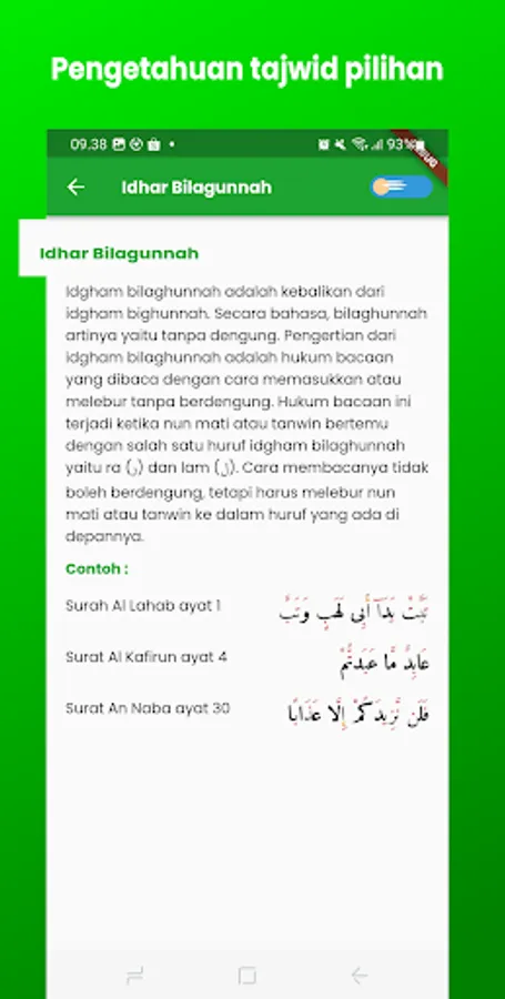 Quran application with a simple display and easy to use. Coupled with knowledge of hadith, prayers, and selected tajwid.