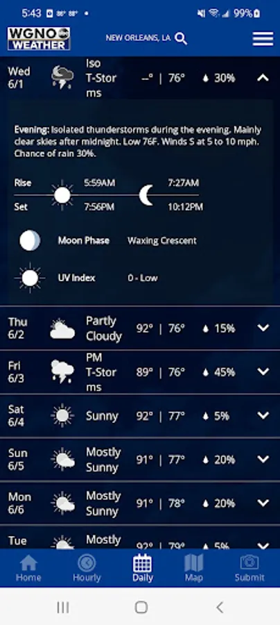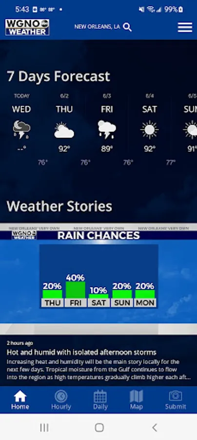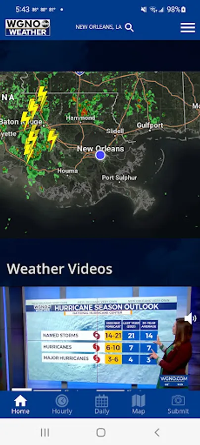 The WGNO Mobile Weather App includes: