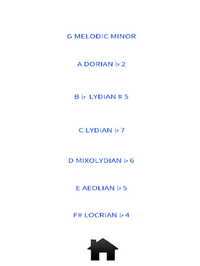 The Guitar Melodic Minor Workout App will test your ability to recall the 7 Melodic Minor modes on the guitar's fretboard. The modes are based on the root key of G minor.