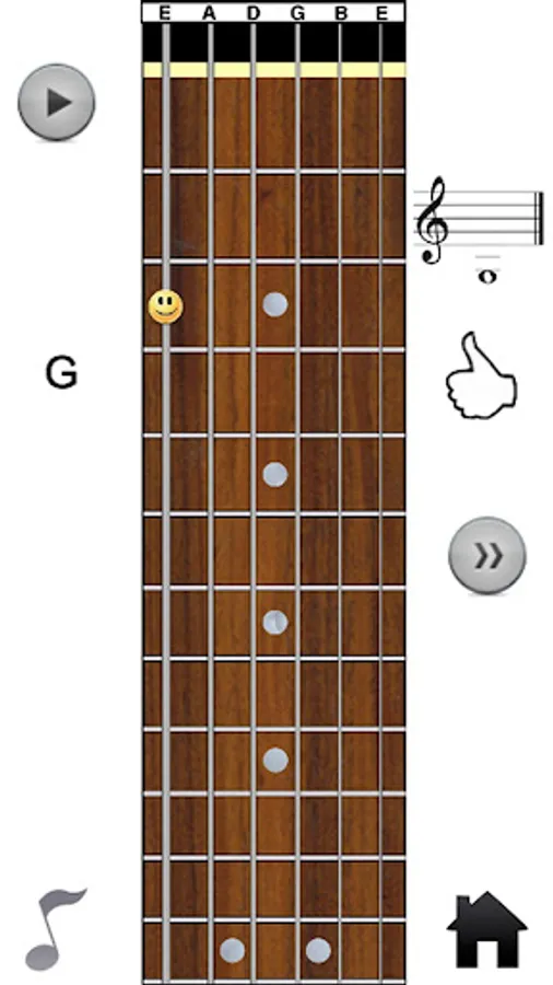 The goal of this app is to improve a guitarist's sight reading ability by matching notes on a music staff to locations on the fretboard for all 6 of the guitar strings up to the 12th fret.