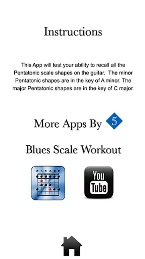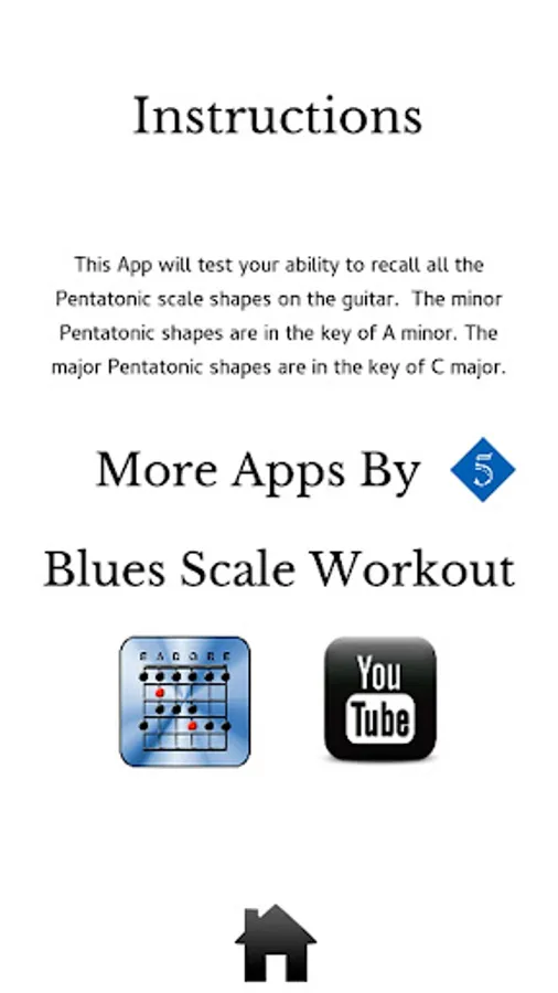 This app will test your ability to recall all the Pentatonic Scale shapes on the guitar. The minor Pentatonic shapes are in the key of A minor. The major Pentatonic shapes are in the key of C major. Think of it as a game of "Simon Says" on the guitar fretboard.