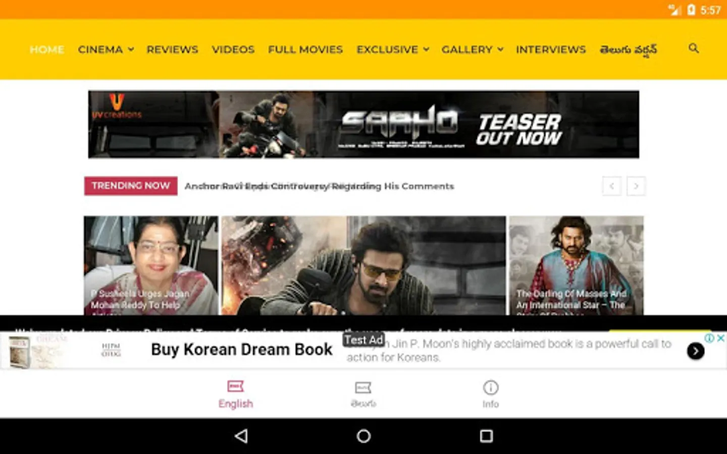 TFN (Telugu Filmnagar) is the prime destination for the movie lovers which enables you to enjoy the exclusive content such as latest news, movie reviews, rare photos, talks and much more, in two languages English and Telugu.