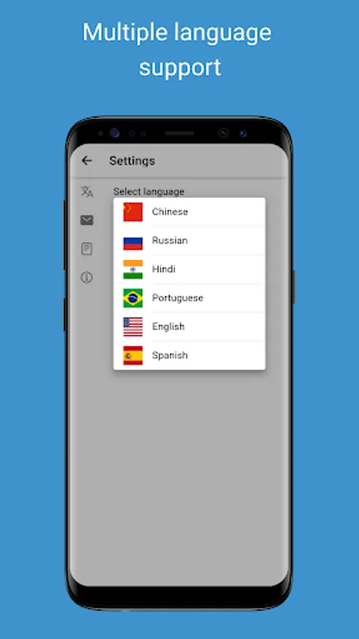 Our app is available in English, Spanish, Portuguese, Russian, Chinese and Hindi and doesn't need internet connection