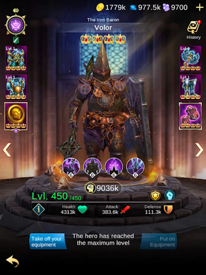 HERO LEVEL: Elevate your champions to Level 450. With each level, their health, attack, and damage amplify, unlocking powerful combat abilities.