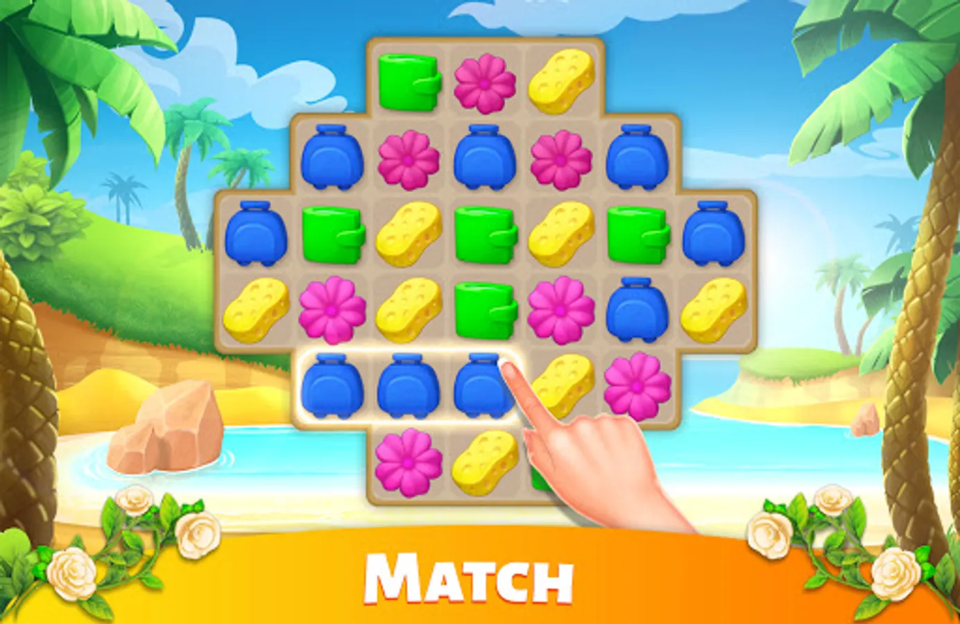 The relaxing atmosphere of the game will take you on an unforgettable Match-3 journey. Match elements, blast bombs, and clear the Match-3 board like a real puzzle guru! By finding the smart combos, you can create a new island resort.