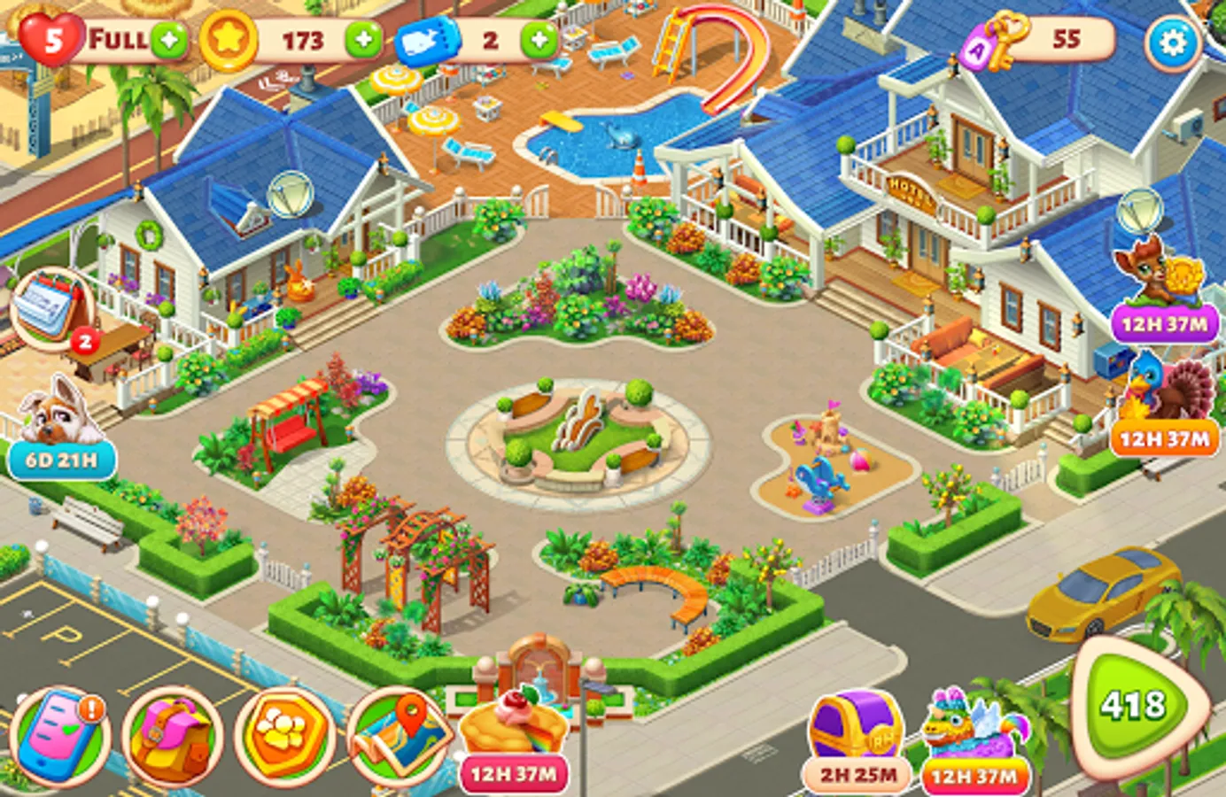 Escape the stress of everyday life while relaxing with a game of Resort Hotel: Bay Story! Solve Match-3 puzzles and build your very own vacation spot in this family hotel design game!