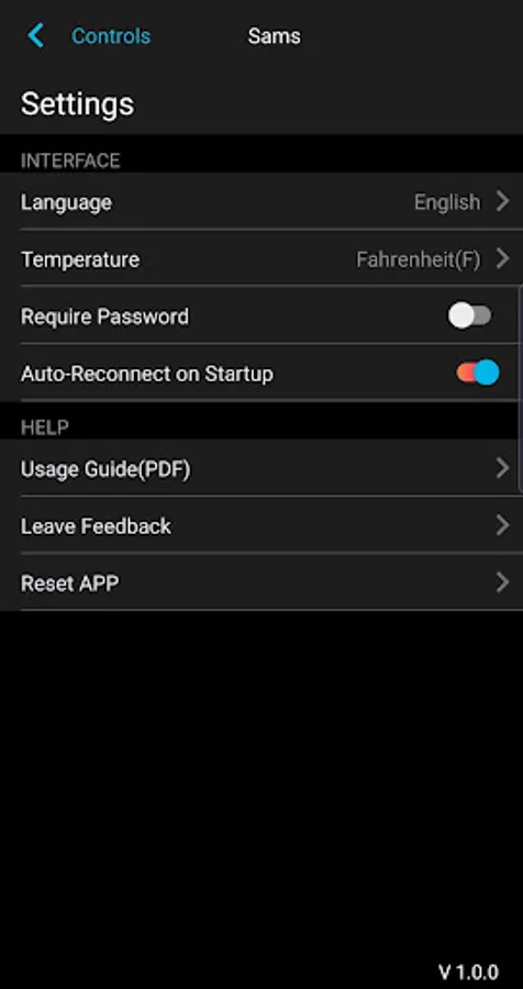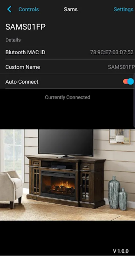 - Enable or disable the fireplace to connect to Bluetooth automatically on app startup