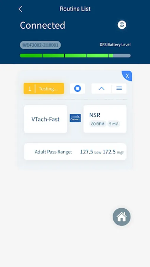 C. AED Battery: test for ensuring the battery level is good enough for giving defibrillation when needed.