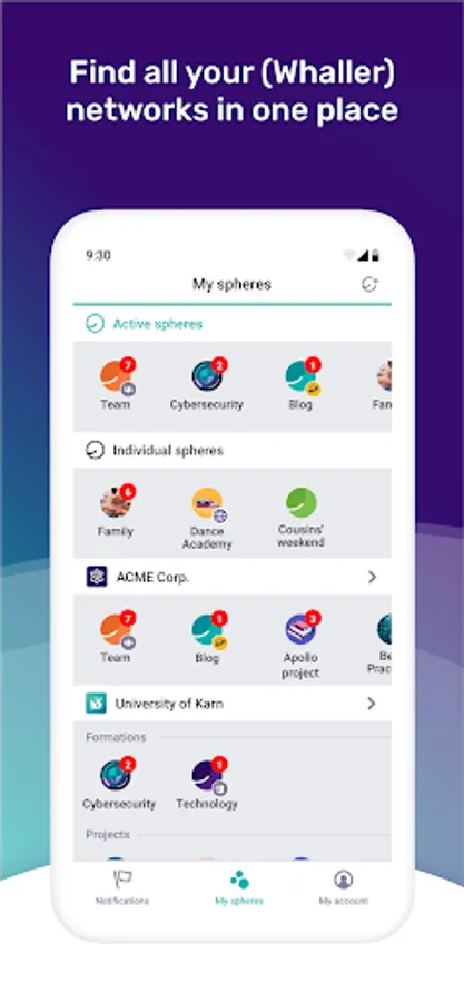 Networks are built using a unique system of “spheres” (independent spaces for communication and collaboration). Each sphere includes a variety of features and tools.