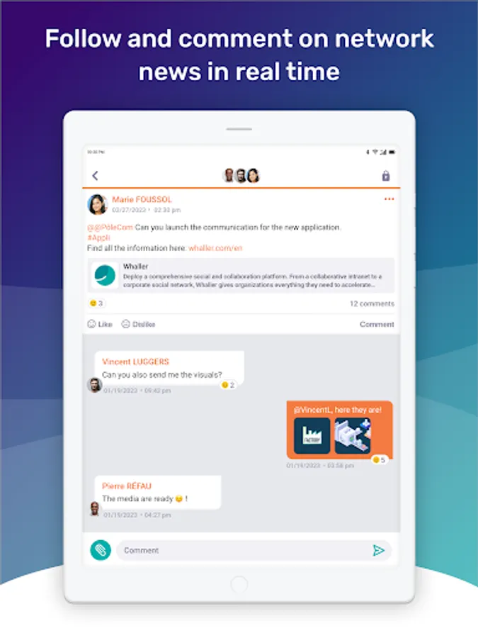 Create or find all your Whaller networks on your smartphone or tablet.