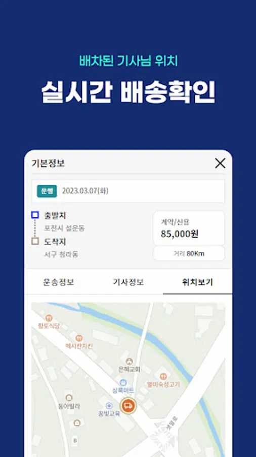 - For dispatched orders, the customer directly checks the driver's information location in real time.