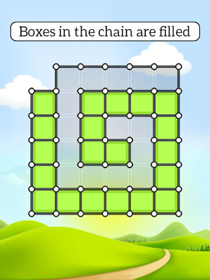 Make connections to fill the squares, fill in all the squares to win! Make the right connections to start a chain-reaction and fill many boxes in one go, but think about it as your connections are limited...
