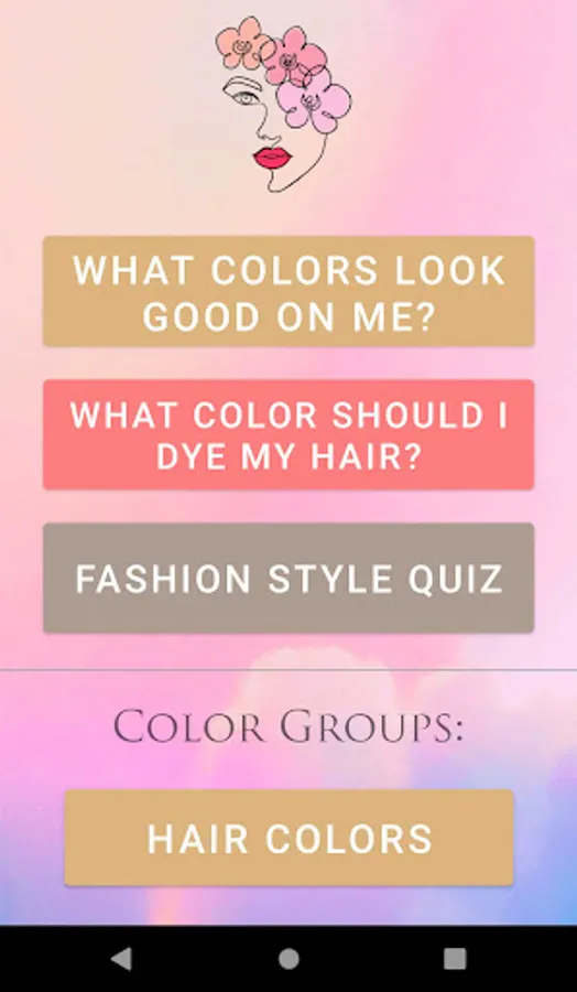 Discover your true colors now! The ultimate quiz app that unveils the perfect shades to elevate your style and make you shine! Whether you're looking for the ideal wardrobe palette or contemplating what color should I dye my hair, this app is here to guide you every step of the way.