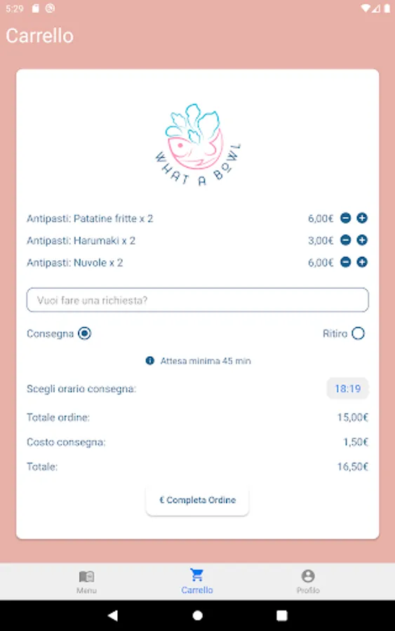 Ecco la nostra App da cui potrete ordinare i nostri piatti.