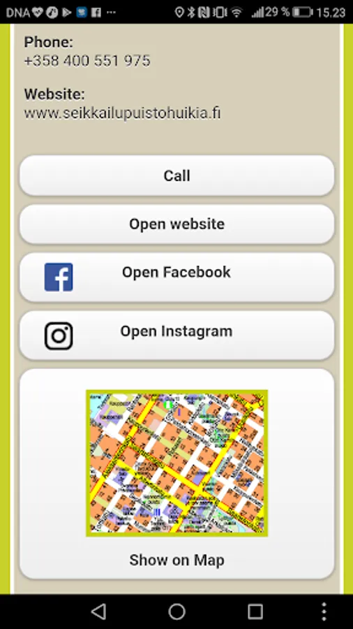 The app is easy to use. The user can switch between the main headings and company specific data using the Back button or the phone’s own back arrow button. The Call, Open website and Show on Map buttons can also be used to phone a company or switch to their website or location on the map. The Search function at the bottom of the main section is useful if the user wants to search for a service or operator by a specific word.