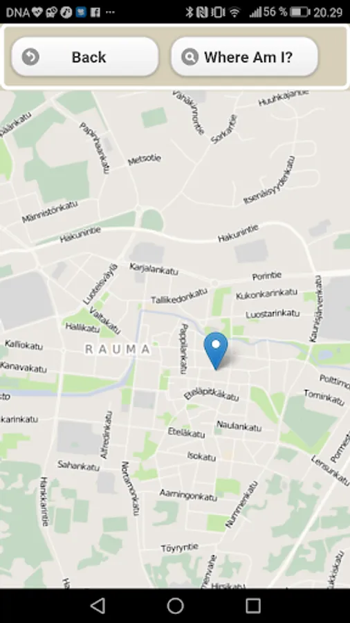 The user has access to the maps of the Rauma and region. On the location service, the user can see their own location on the map.