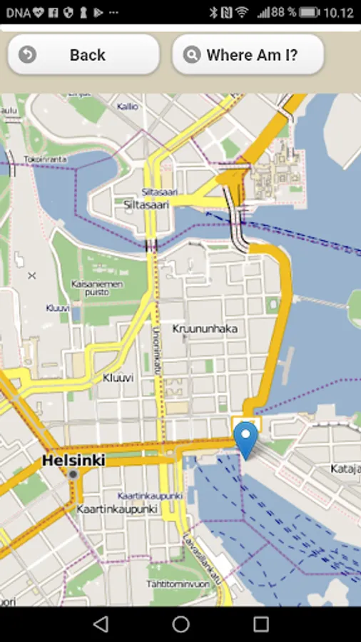 The user has access to the maps of the Helsinki city. On the location service, the user can see their own location on the map.