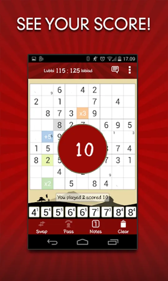 6. On the board there is 4 bonus squares (x2, x3, +5 and +10)