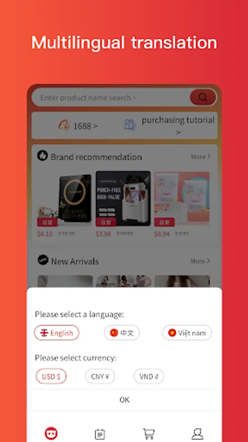 2. Support: Chinese, English and Vietnamese translation to provide users with a smooth shopping experience.