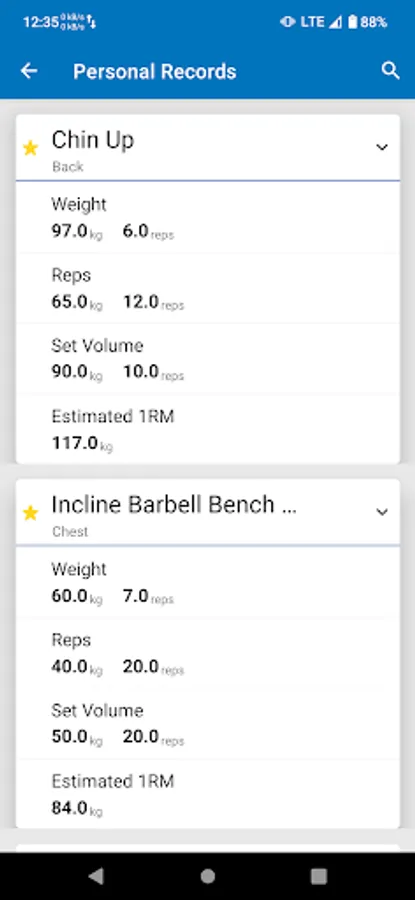 * Volume, actual 1RM, estimated 1RM, and other stats tracking