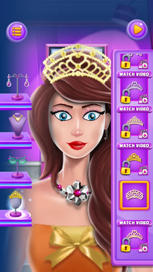 Make up with your style and pick your favorite match. In this beauty salon, you can experience the real makeup process. You can use foundation, eye makeup, lipstick, hairstyle, necklace and earrings to dress up. Tons of tools for you to discover, use facial cleanser to do a skin massage before makeup, choose different cosmetics to create fashion makeups, Style your costomers with clothing, hairstyles and accessories to match her look!
