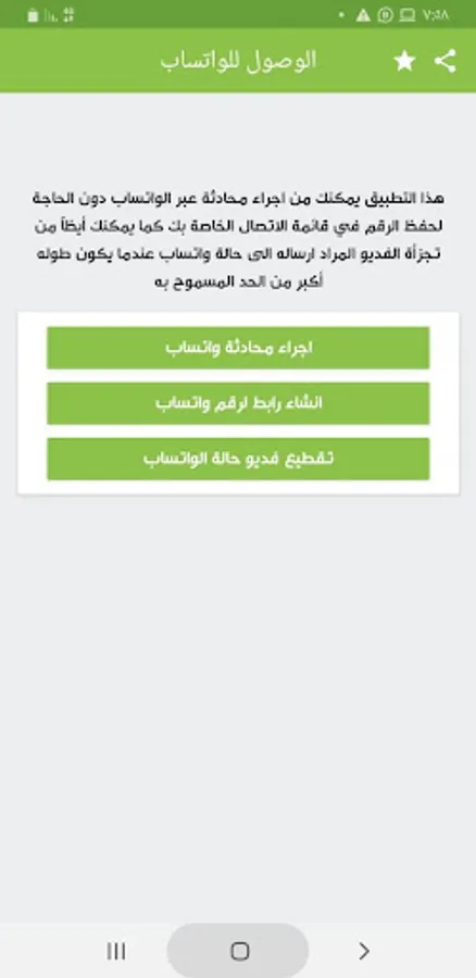 This application enables you to send messages via WhatsApp without the number being saved in your contact list