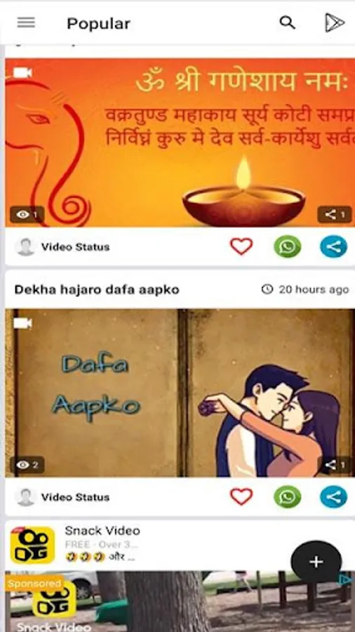 Share Videos: Download & Share full screen video status in HD quality with your friends on other social networks.