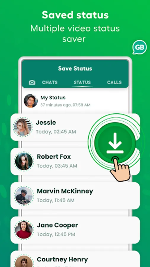 - Status Saver app: save gb WhatsApp statuses of your family and friends in just one click and share them with others.