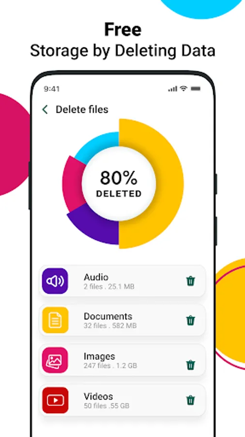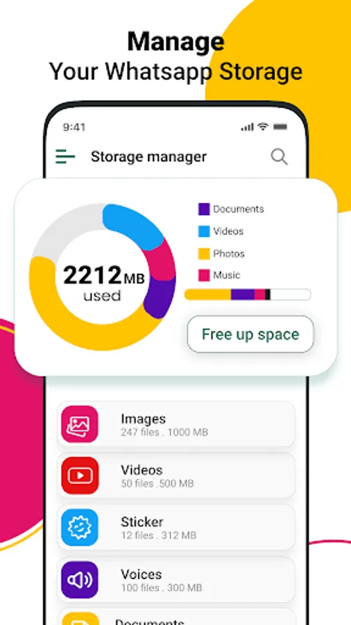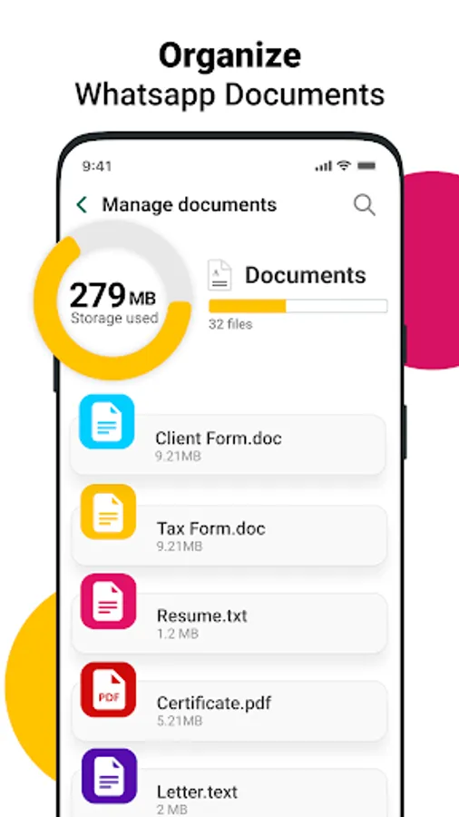 Once the storage is organized you can delete unwanted photos, videos, and documents easily at once without the hassle of finding them individually in chats.