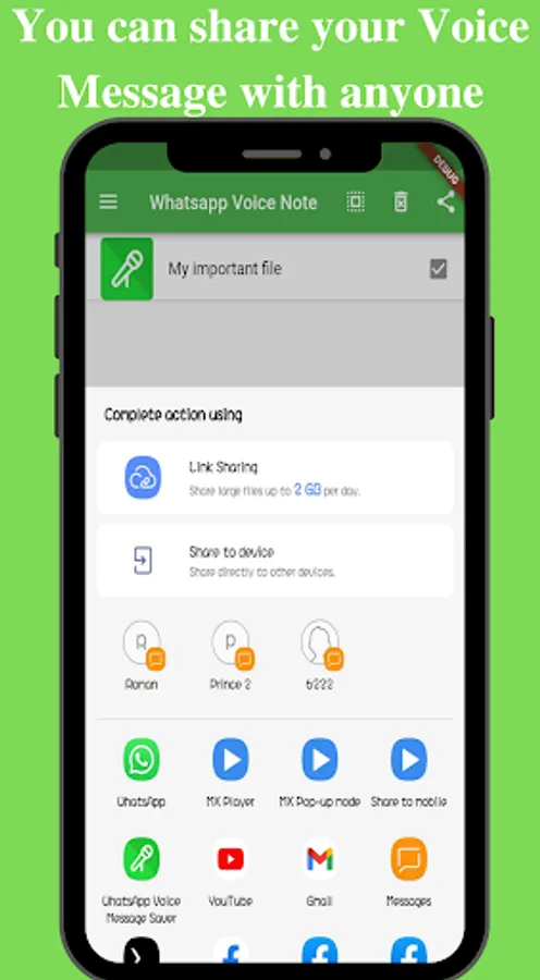 => You can also share it will other phones or other applications because it has i key feature of sharing voice notes.