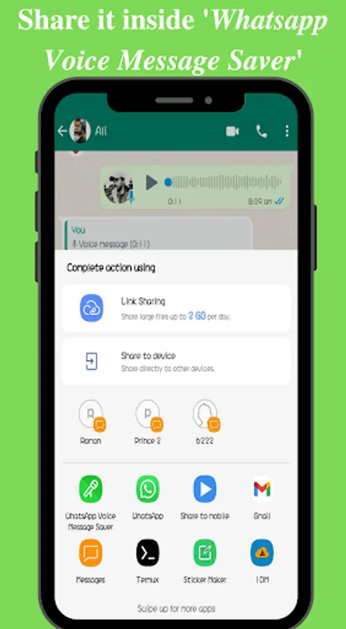 7. Then select our application WhatsApp Voice Message Saver in the share list.