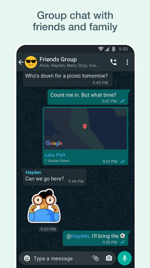 Share your location with only those in your individual or group chat, and stop sharing at any time. Or record a voice message to connect quickly.