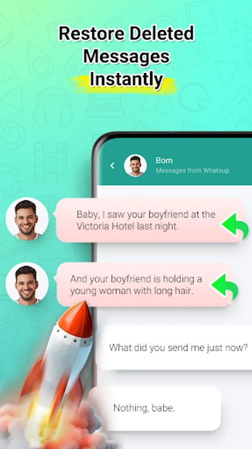 The WA deleted messages recovery App is NOT affiliated with any Official brand or trademark like WhatsApp, WhatsApp Business or WhatsApp Inc. And the RDM Recover deleted messages App is also NOT affiliated with any third-party App like snapchat, disk digger photo recovery. (Including the product name and logo mentioned above.)