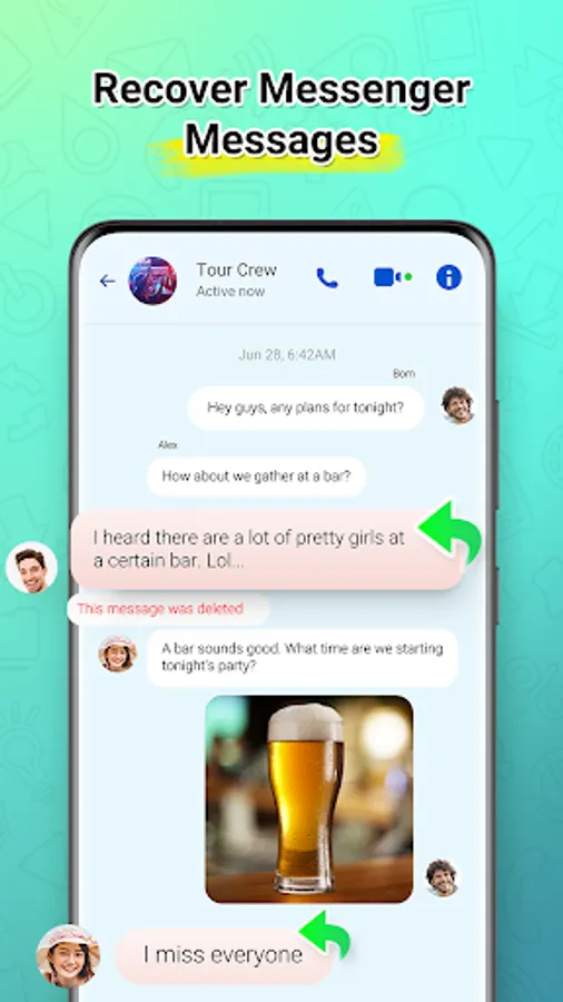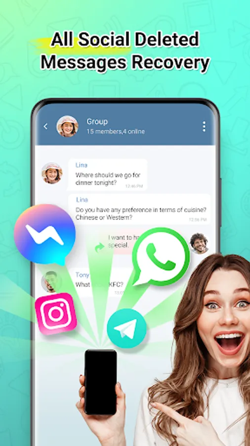 We can recover deleted messages in WA as well as recover deleted text messages from Messenger, Telegram and Instagram.