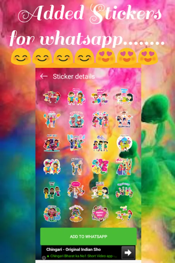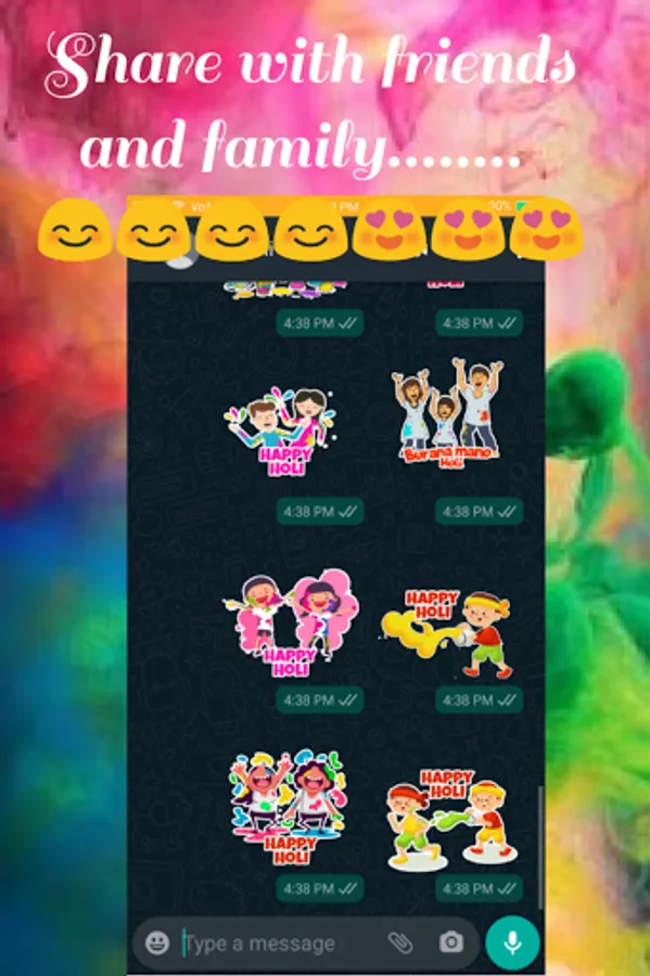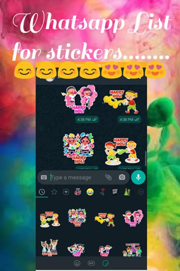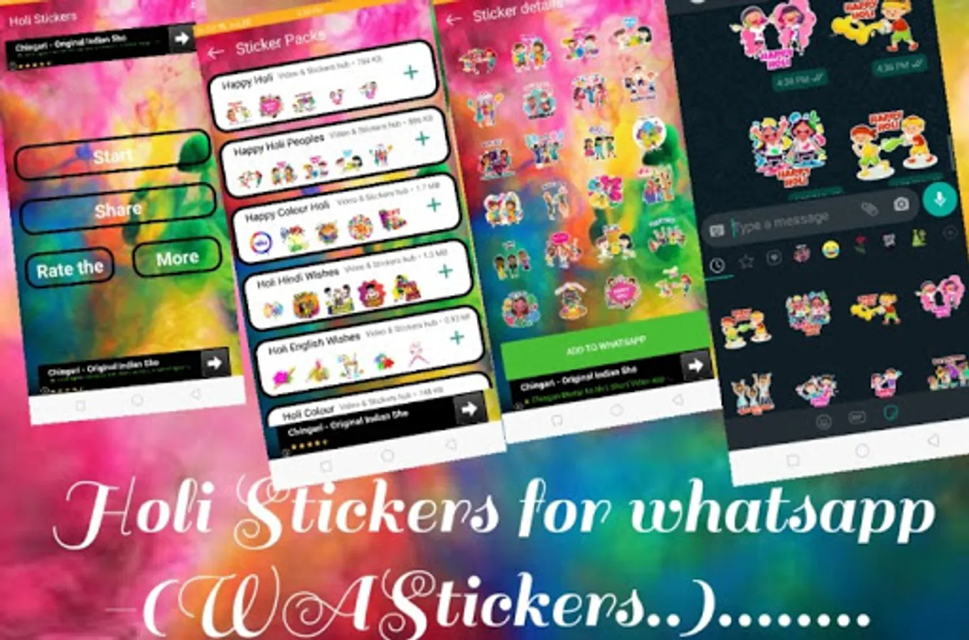 WhatsApp sharing stickers is now available! Send your favorite Holi Stickers to your friends for Holi Festival.