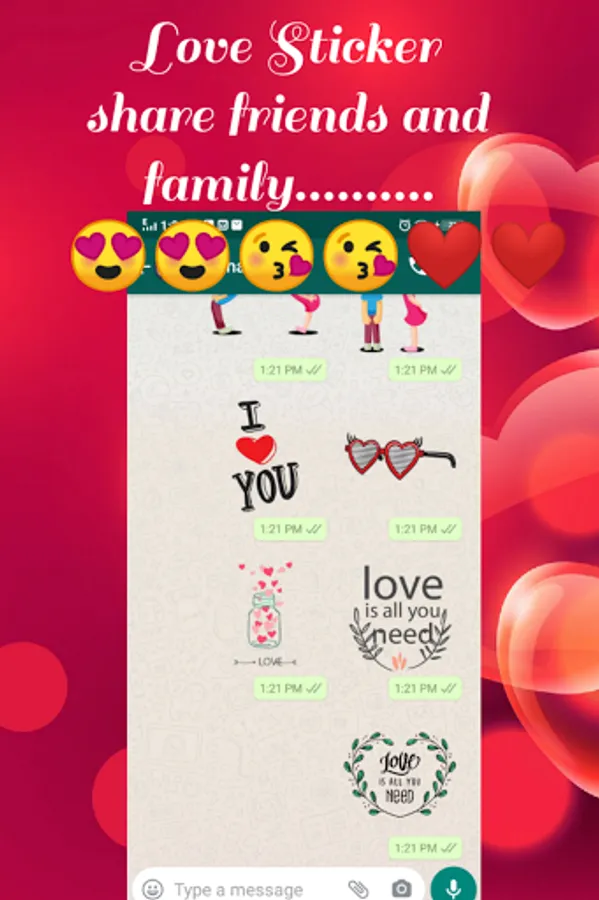 Love Message Stickers is a collection of the best love stickers that can be easily shared with boyfriend/girlfriend on WhatsApp and on social networks.