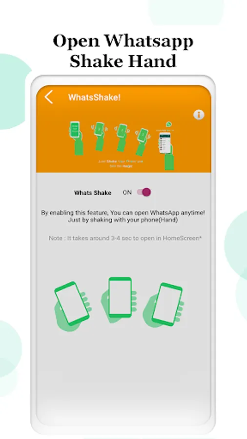 This feature let you open whatsapp anytime on your mobile screen even when you are using another app just by shaking your device with hand and open whatsapp.
