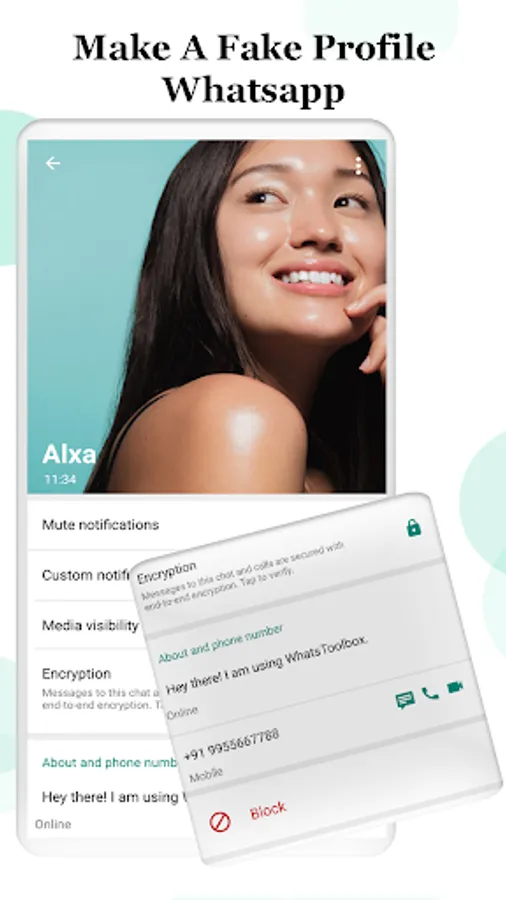 Duplicates any one whatsapp profile on page. Just for fun, Prank profile.