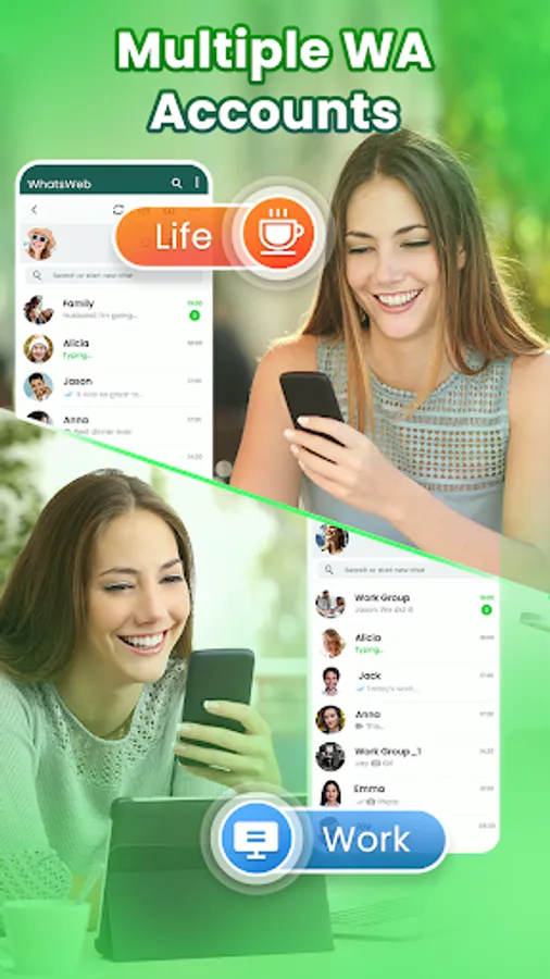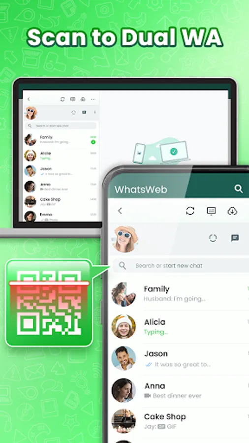 Whatscan for WhatsWeb-Whats Web is a utility App that helps you open the multiple WA accounts on the same device or log in to your WA accounts on different devices by scanning the QR Code of Whatcan Web for Whatsweb.