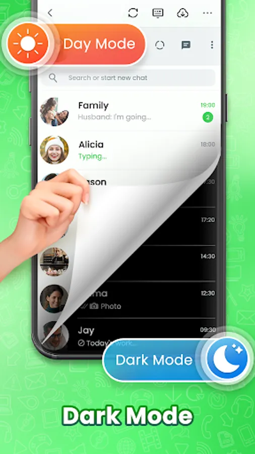 • The Whatscan for WhatsWeb App's exclusive dark mode allows you to chat freely at night without screen damage to your eyes.