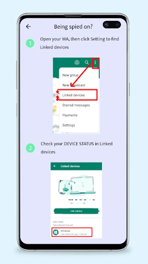 2️⃣ Open WhatsApp on another device, tap the 3 dots on the right, and select "Web WhatsApp."