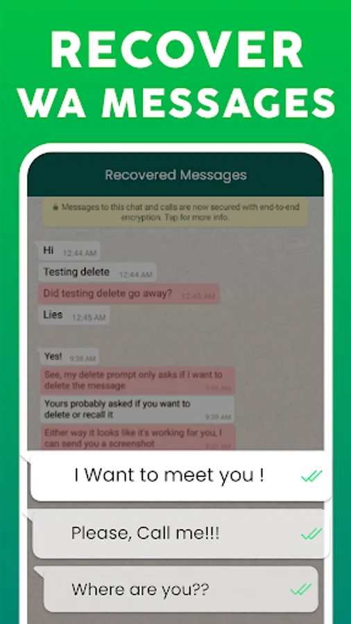 Now you can easily Recover Deleted WA Messages, conversations, videos, and images that were deleted from WA in a very simple way. WA Status Downloader app has an awesome feature of recovering deleted WA conversations by scanning your device notifications and it will notify you whenever any message or media file gets deleted from the WA app.