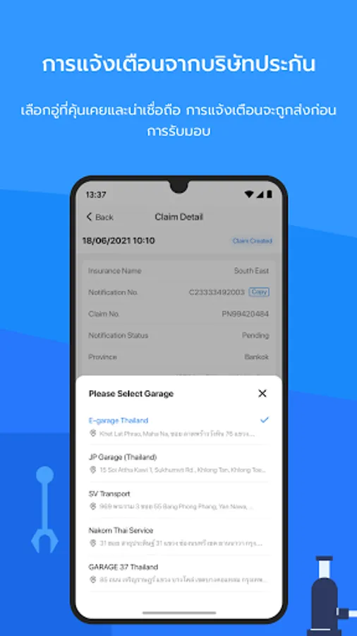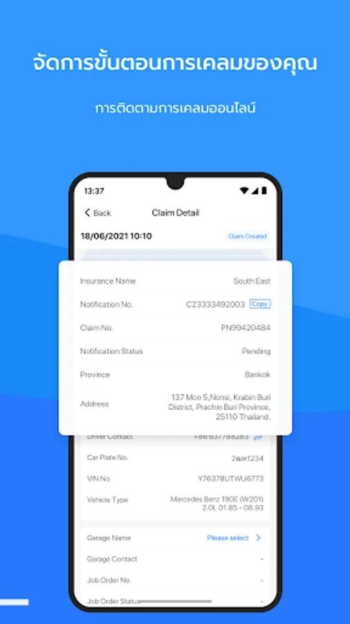 [Notification of insurance] Online tracking for the claim process. Choose a familiar and assured garage, notification will be sent before picking up.