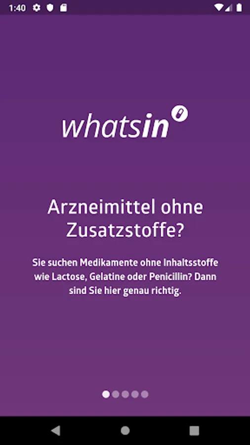 Simply enter the name of the medication or photograph the barcode on the medication pack. whatsin will find the right product for you. It is also possible to search for areas of application such as coughing, hay fever, racing or joint pain. There are more than a hundred such medical applications to choose from.