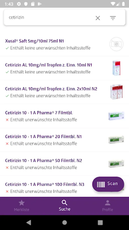Simply specify in your profile which ingredients you want to do without and whatsin will find suitable products for you. You can choose from the profiles lactose intolerance, histamine tolerance, gluten intolerance, vegan lifestyle, Muslim dietary regulations, sugar-free medication, competitive athletes, drug tests, and much more.